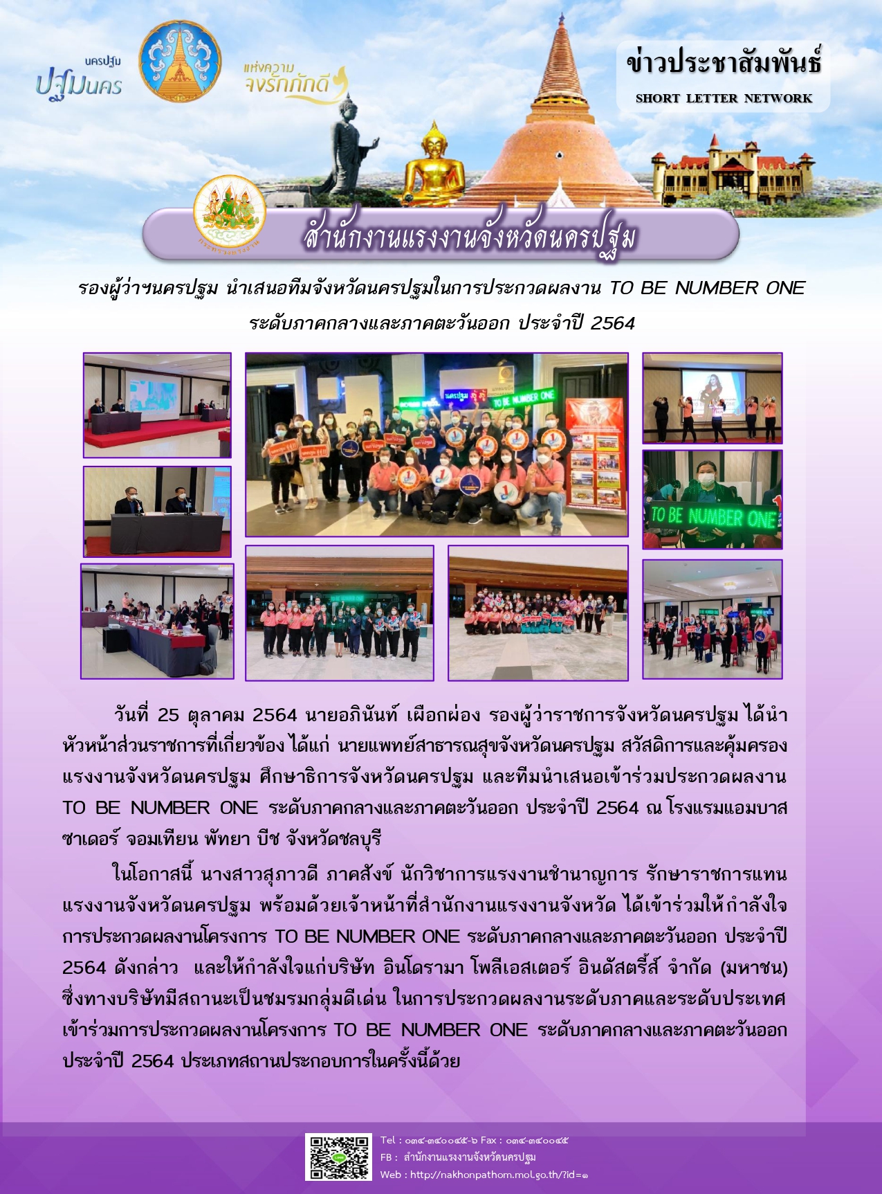 รองผู้ว่าฯนครปฐม นำเสนอทีมจังหวัดนครปฐมในการประกวดผลงาน TO BE NUMBER ONE ระดับภาคกลางและภาคตะวันออก ประจำปี 2564