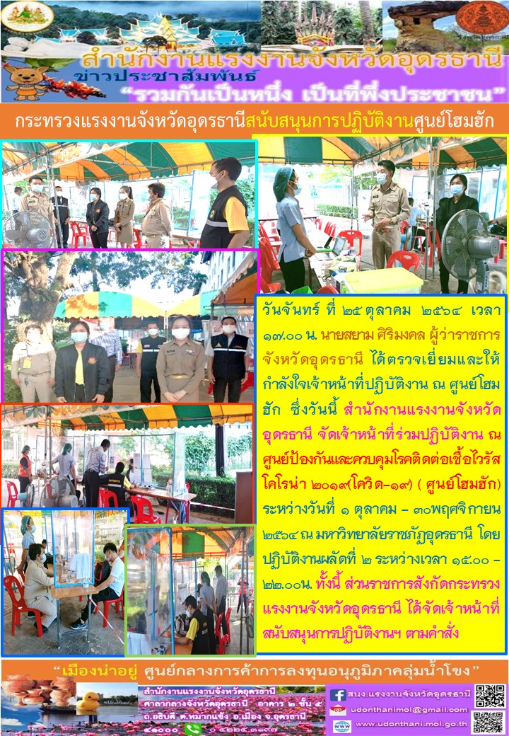 กระทรวงแรงงานจังหวัดอุดรธานีสนับสนุนการปฏิบัติงานศูนย์โฮมฮัก