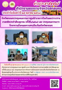 แรงงานจังหวัดสกลนคร ร่วมการประชุมคณะกรรมการศูนย์อำนวยการป้องกันและปราบปรามยาเสพติดประจำเดือนตุลาคม (ครั้งที่ 6/2564) และ การประชุมคณะกรรมการรักษาความมั่นคงและความสงบเรียบร้อยจังหวัดสกลนคร