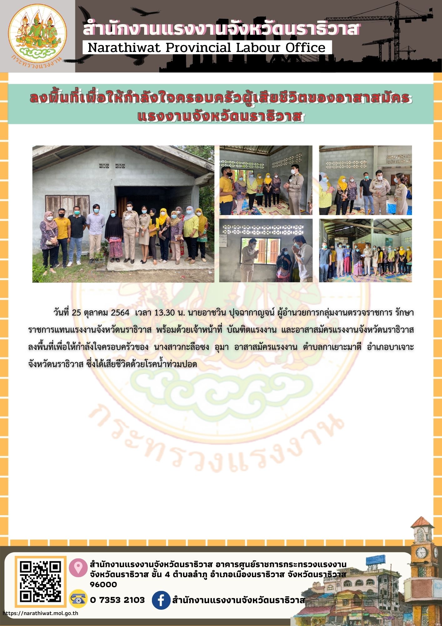 แรงงานจังหวัดนราธิวาส ลงพื้นที่เพื่อให้กำลังใจครอบครัวผู้เสียชีวิตของอาสาสมัครแรงงานจังหวัดนราธิวาส