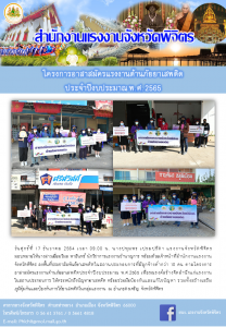 สำนักงานแรงงานจังหวัดพิจิตร ดำเนินโครงการอาสาสมัครแรงงานต้านภัยยาเสพติด ประจำปีงบประมาณ พ.ศ.2565