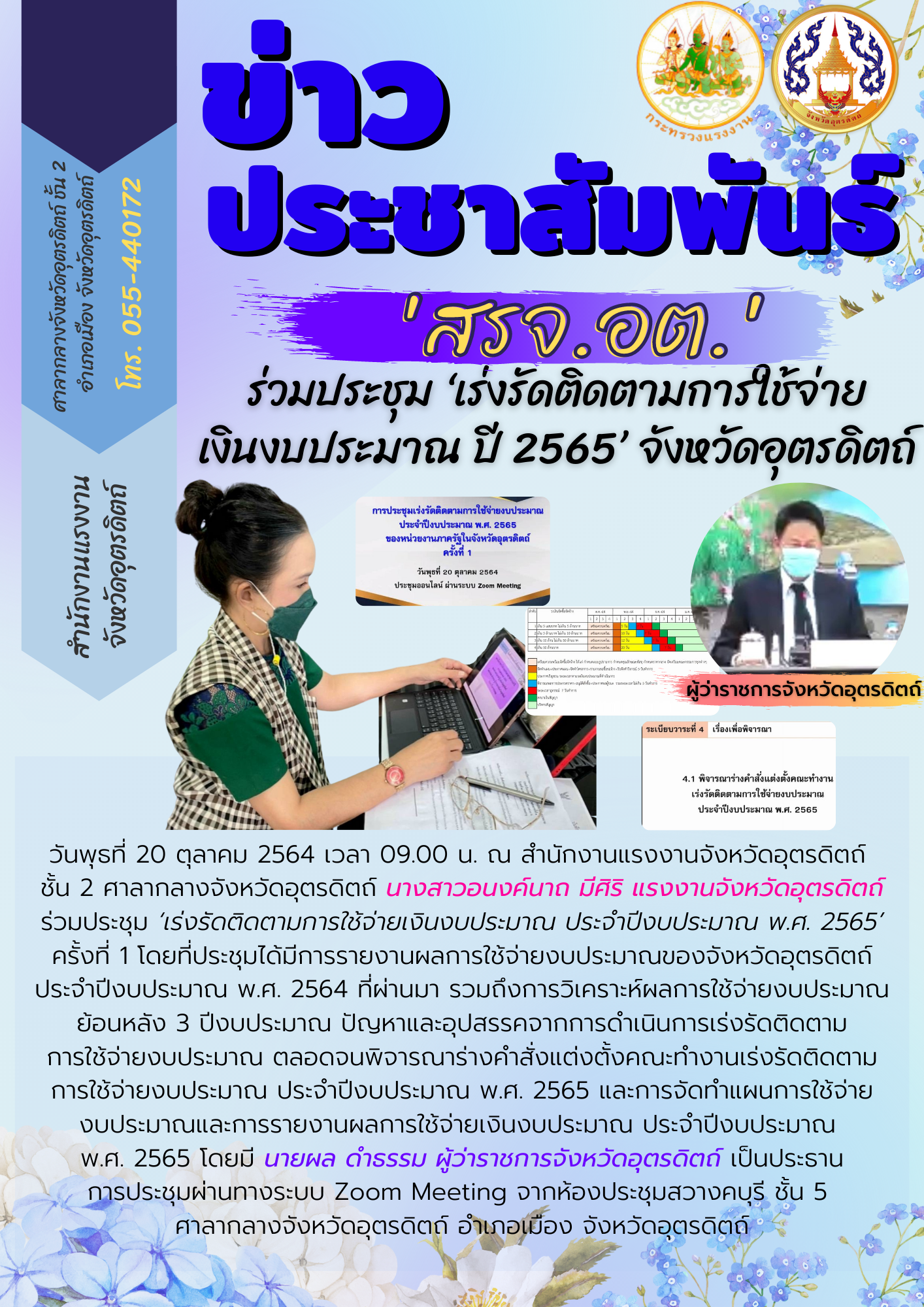 ‘สรจ.อต.’ ร่วมประชุม ‘เร่งรัดติดตามการใช้จ่ายเงินงบประมาณ ปี 2565’ จังหวัดอุตรดิตถ์
