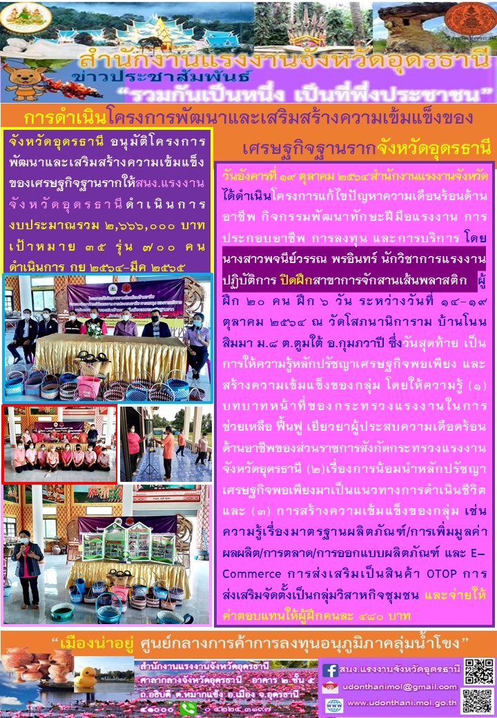 สรจ.อุดรธานี การดำเนินโครงการพัฒนาและเสริมสร้างความเข้มแข็งของเศรษฐกิจฐานรากจังหวัดอุดรธานี
