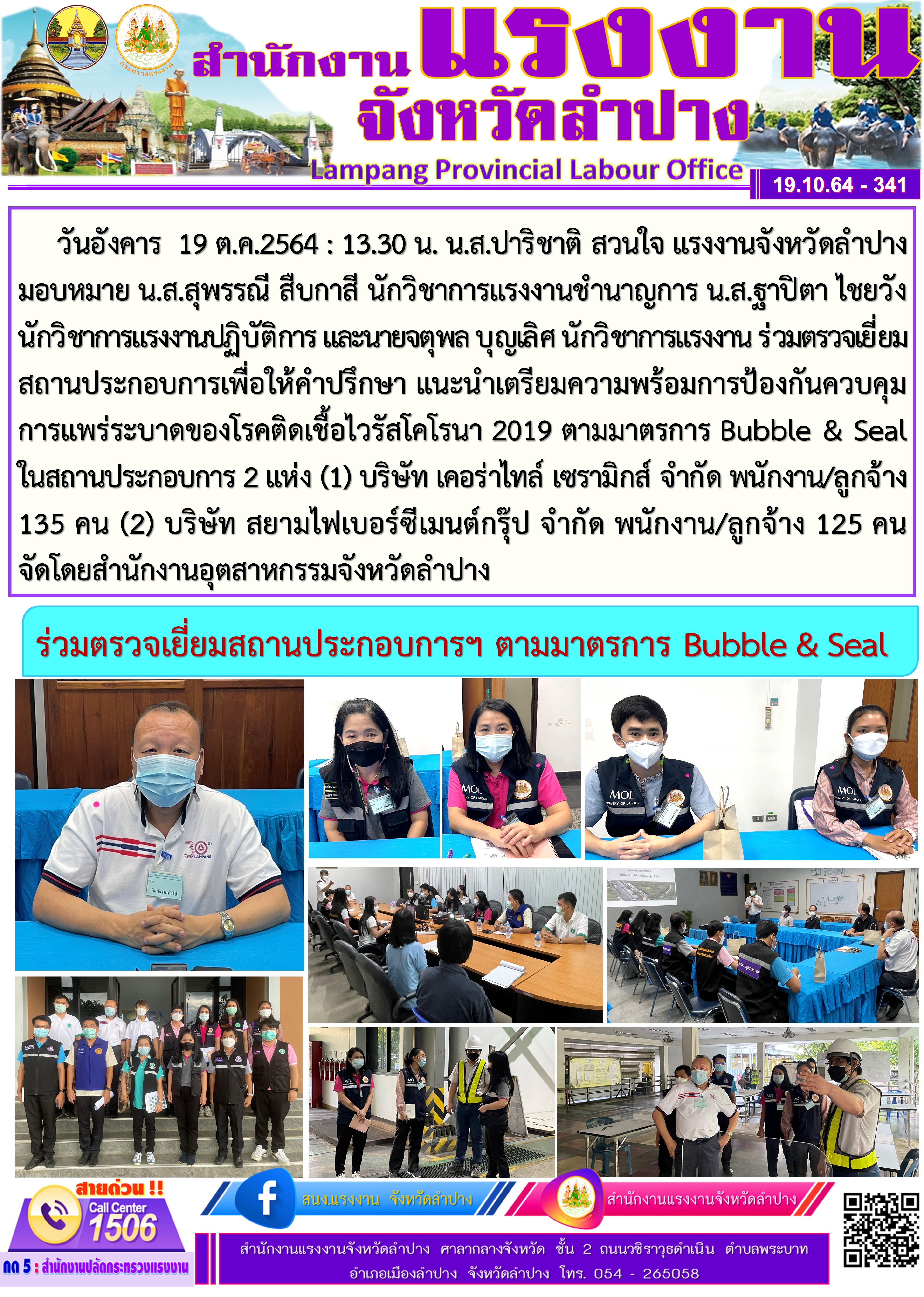 สรจ.ลำปาง ร่วมตรวจเยี่ยมสถานประกอบการฯ ตามมาตรการ Bubble & Seal