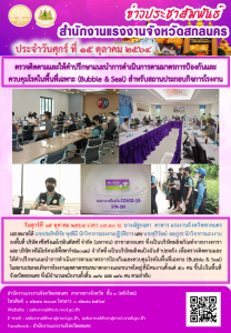 สรจ.สกลนคร ตรวจติดตามและให้คำปรึกษาแนะนำการดำเนินการตามมาตรการป้องกันและควบคุมโรคในพื้นที่เฉพาะ (Bubble & Seal) สำหรับสถานประกอบกิจการโรงงาน