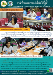 สรจ.ชัยภูมิ การประชุมคณะกรรมการโรคติดต่อ ครั้งที่ 91/2564 /และการประชุมเพื่อจัดทำแผน(Action Plan)ประจำปี 2565 ภายใต้แผนปฏิบัติการด้านบริหารจัดการแรงงานนอกระบบ ปี 2563-2565