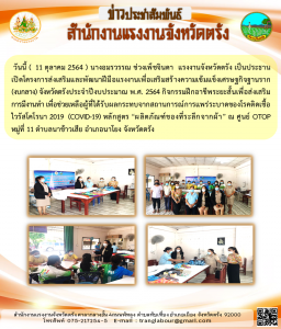 แรงงานจังหวัดตรัง เป็นประธานเปิดโครงการส่งเสริมและพัฒนาฝีมือแรงงานเพื่อเสริมสร้างความเข้มแข็งเศรษฐกิจฐานราก (งบกลาง) จังหวัดตรังประจำปีงบประมาณ พ.ศ. 2564 หลักสูตร “ผลิตภัณฑ์ของที่ระลึกจากผ้า”
