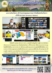 แรงงานจังหวัดตาก เข้าร่วมประชุมคณะกรรมการโรคติดต่อจังหวัดตาก ครั้งที่ 80/2564 (ผ่านระบบ Webex)