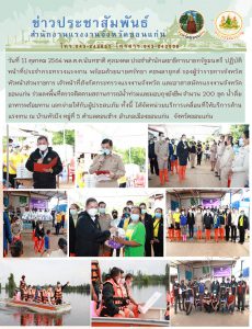 เลขาธิการนายกรัฐมนตรี ร่วมกับรองผู้ว่าราชการจังหวัด หัวหน้าส่วน เจ้าหน้าที่สังกัดกระทรวงแรงงาน และอาสาสมัครแรงงาน พื้นที่ตรวจติดตามสถานการณ์น้ำท่วม ณ บ้านหัวบึง ม.5 ต.ดอนช้าง อ.เมือง จ.ขอนแก่น