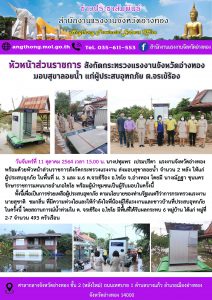 หัวหน้าส่วนราชการ สังกัดกระทรวงแรงงานจังหวัดอ่างทองมอบสุขาลอยน้ำ แก่ผู้ประสบภัยต.จรเข้ร้อง