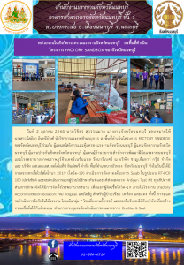 หน่วยงานในสังกัดกระทรวงแรงงานจังหวัดนนทบุรี ลงพื้นที่ดำเนิน โครงการ FACTORY SANDBOX ของจังหวัดนนทบุรี