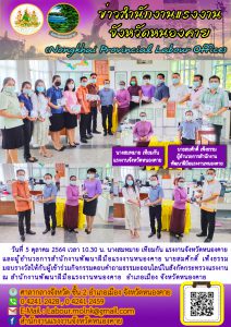 แรงงานจังหวัดหนองคายและผู้อำนวยการสำนักงานพัฒนาฝีมือแรงงานหนองคาย มอบรางวัลให้กับผู้เข้าร่วมกิจกรรมตอบคำถามธรรมะออนไลน์ในสังกัดกระทรวงแรงงาน