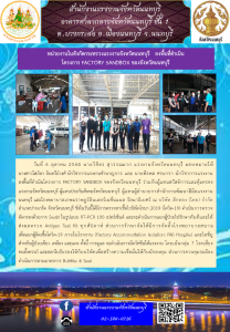 หน่วยงานในสังกัดกระทรวงแรงงานจังหวัดนนทบุรี ลงพื้นที่ดำเนินโครงการ FACTORY SANDBOX ของจังหวัดนนทบุรี