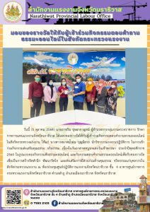แรงงานจังหวัดนราธิวาส มอบของรางวัลให้กับผู้เข้าร่วมกิจกรรมตอบคำถามธรรมะออนไลน์ในสังกัดกระทรวงแรงงาน