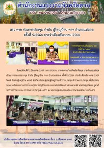 สรจ.สุโขทัย จัดประชุมคณะกรรมการศูนย์ช่วยเหลือผู้ประสบความเดือดร้อนด้านอาชีพกระทรวงแรงงาน ประจำจังหวัดสุโขทัย ประจำปีงบประมาณ พ.ศ.2565