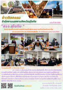 สรจ.สุโขทัย รายงานผลการดำเนินงานศูนย์บริการร่วมกระทรวงแรงงานจังหวัดสุโขทัย ประจำเดือนพฤศจิกายน 2564