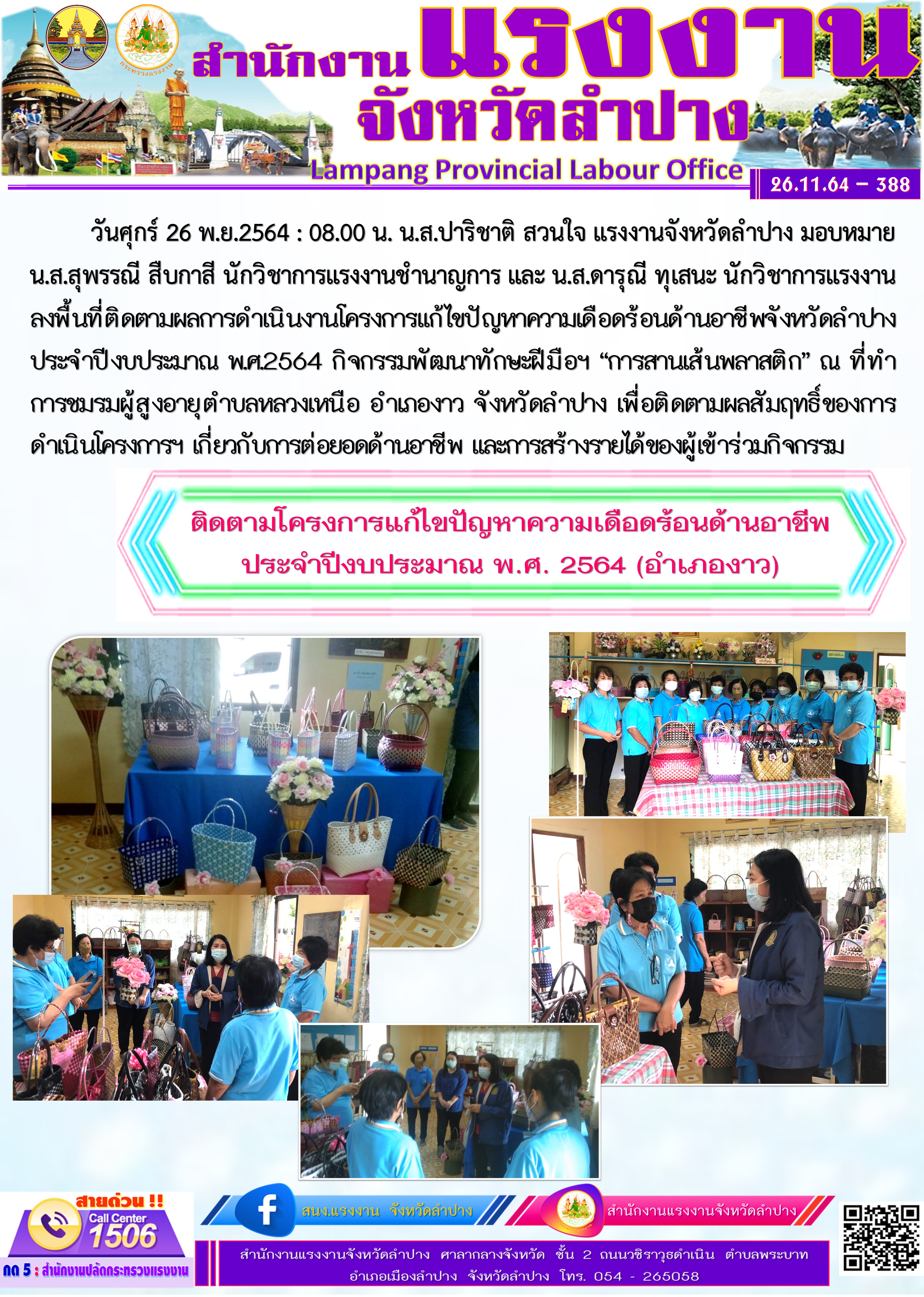 ติดตามผลการดำเนินงานโครงการแก้ไขปัญหาความเดือดร้อนด้านอาชีพฯ ประจำปีงบประมาณ พ.ศ.2564 อ.งาว
