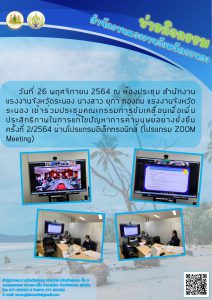 สรจ.ระนอง ประชุมคณะกรรมการขับเคลื่อนเพื่อเพิ่มประสิทธิภาพในการแก้ไขปัญหาการค้ามนุษย์อย่างยั่งยืน ครั้งที่ 2/2564 ผ่านโปรแกรม ZOOM Meeting