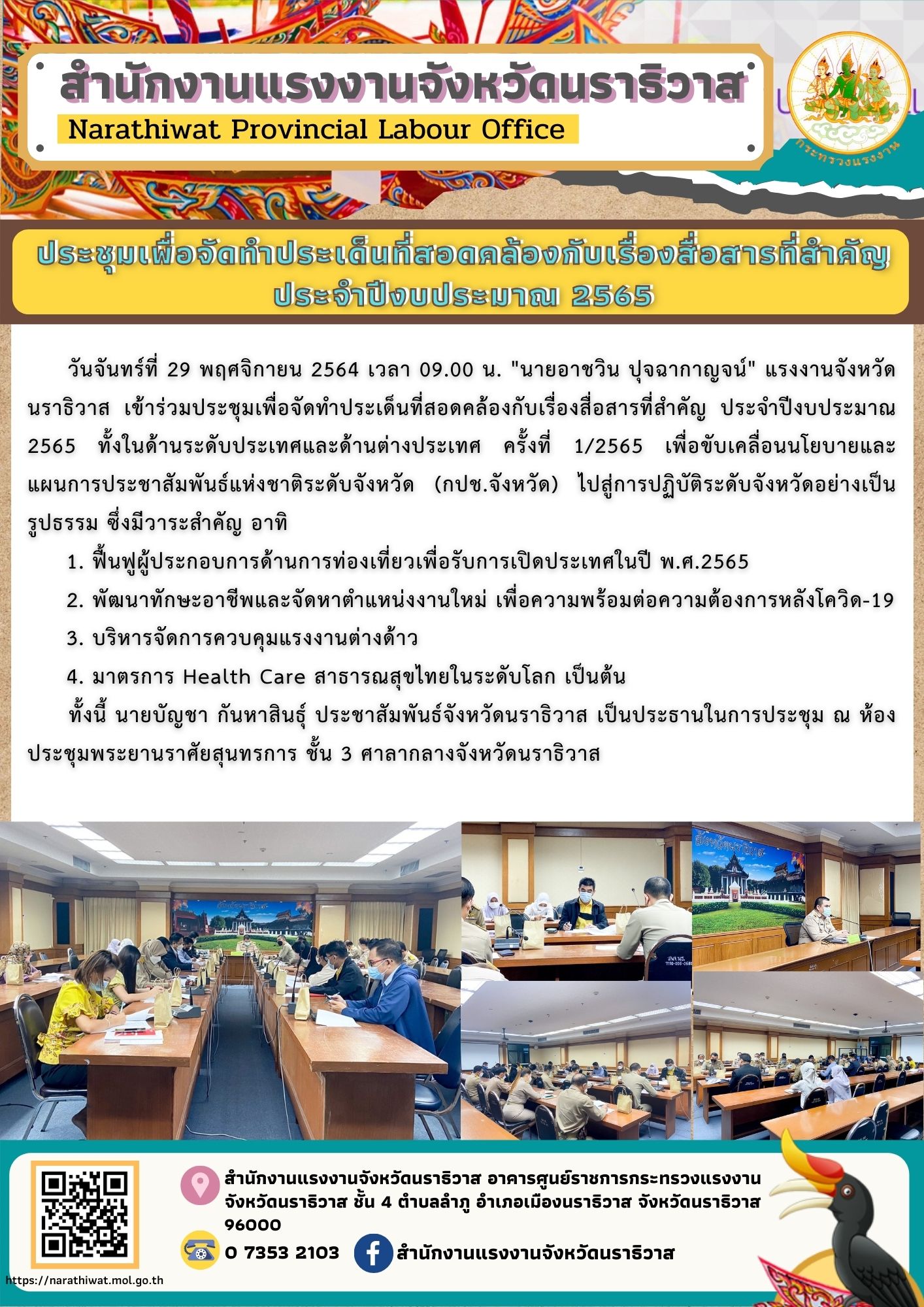แรงงานจังหวัด ร่วมประชุมเพื่อจัดทำประเด็นที่สอดคล้องกับเรื่องสื่อสารที่สำคัญ ประจำปีงบประมาณ 2565