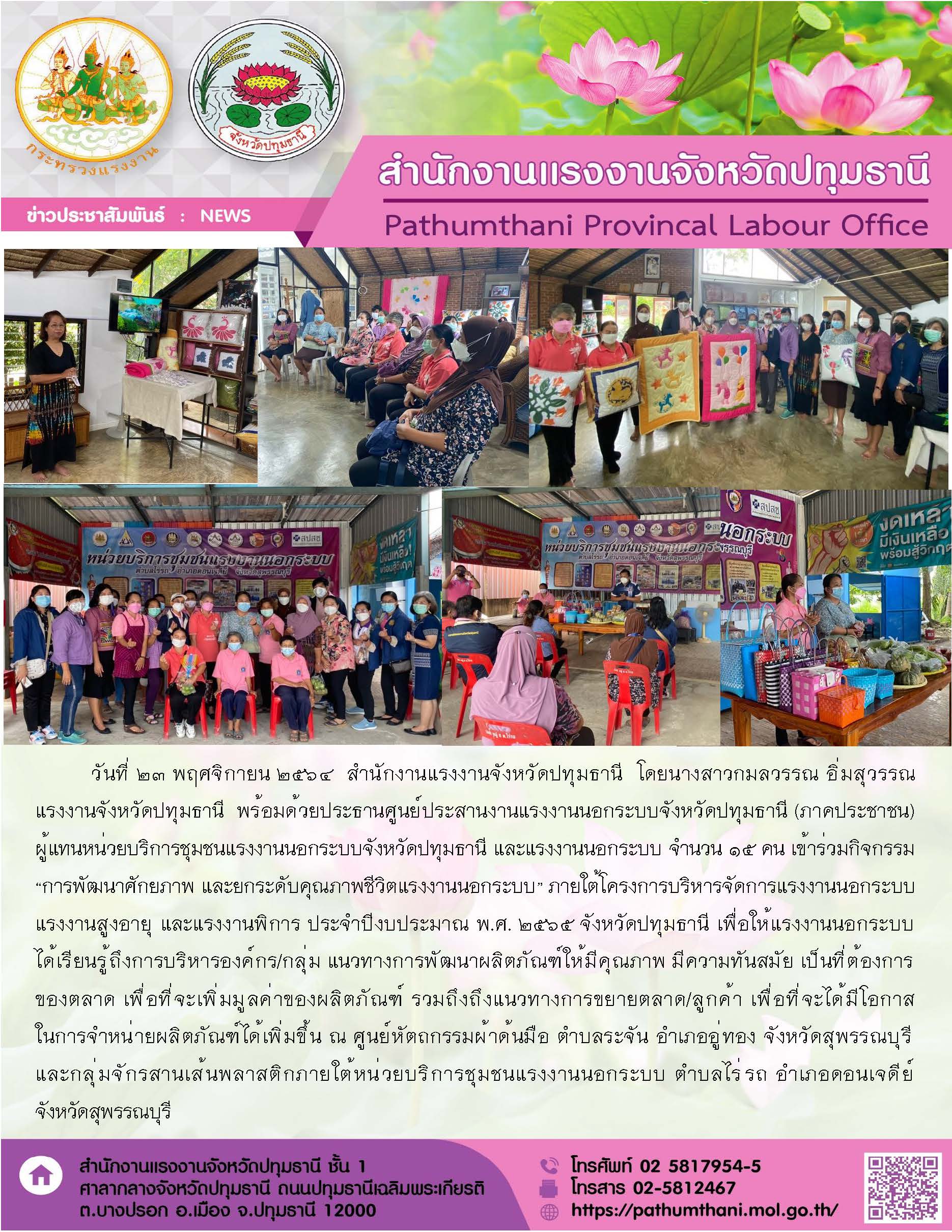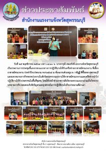 แรงงานจังหวัดปทุมธานี ร่วมกิจกรรม “การพัฒนาศักยภาพ และยกระดับคุณภาพชีวิตแรงงานนอกระบบ” จังหวัดสุพรรณบุรี”
