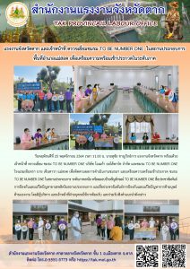 แรงงานจังหวัดตาก และเจ้าหน้าที่ ตรวจเยี่ยมชมรม TO BE NUMBER ONE ในสถานประกอบการ พื้นที่อำเภอแม่สอด เพื่อเตรียมความพร้อมเข้าประกวดในระดับภาค
