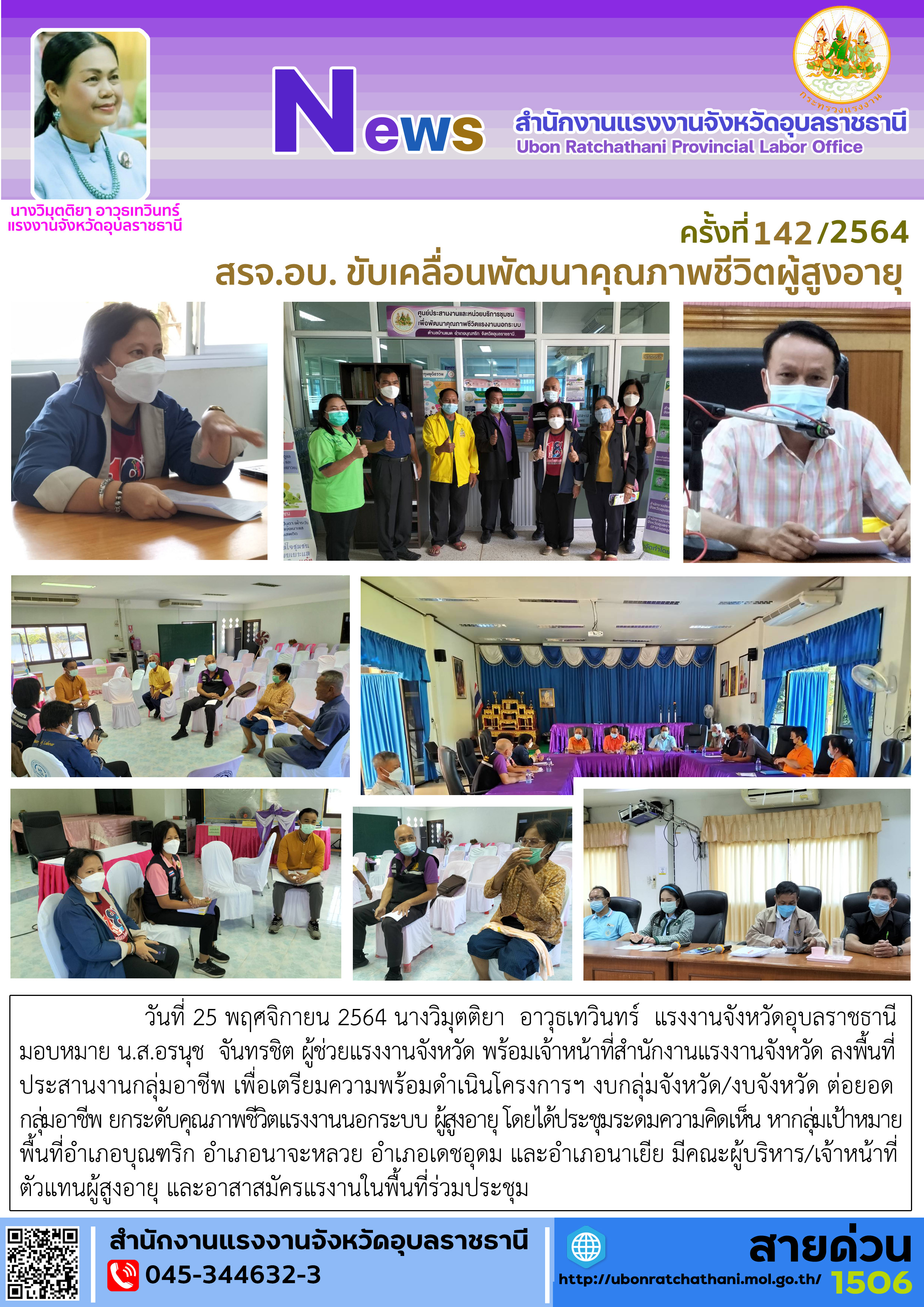 สรจ.อุบลราชธานี เตรียมความพร้อม ยกระดับคุณภาพชีวิตผู้สูงอายุ