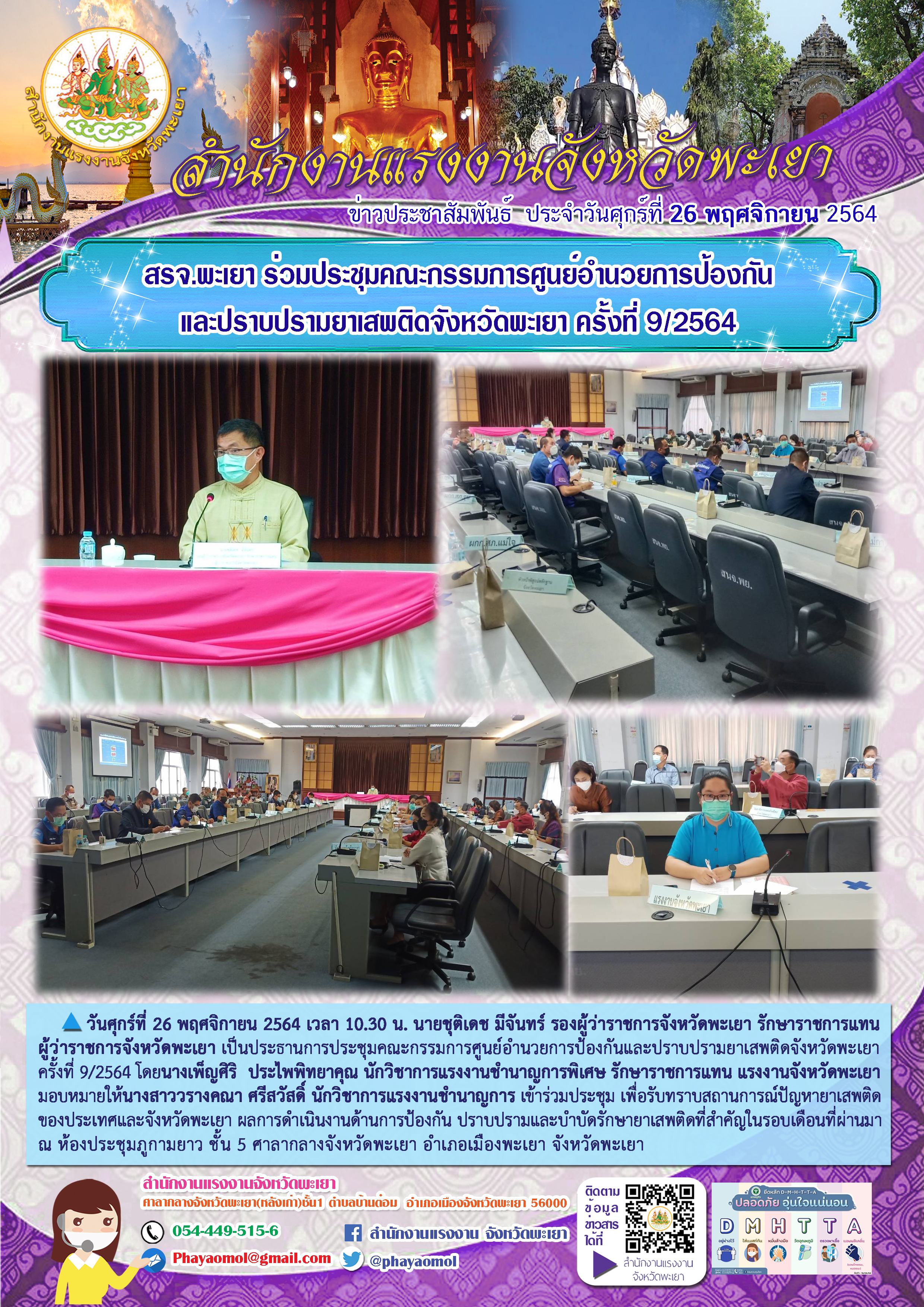 สรจ.พะเยา ร่วมประชุมคณะกรรมการศูนย์อำนวยการป้องกันและปราบปรามยาเสพติดจังหวัดพะเยา ครั้งที่ 9/2564