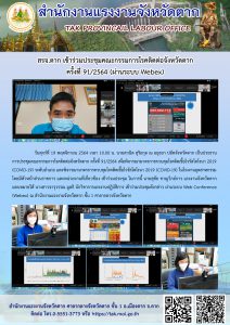 แรงงานจังหวัดตรัง ร่วมประชุมคณะกรรมการโรคติดต่อจังหวัดตรัง ครั้งที่ 37/2564 เพื่อติดตามและประเมินสถานการณ์ของจังหวัดตรังและกำหนดมาตรการป้องกันและควบคุมการแพร่ระบาดของโรคติดเชื้อไวรัสโคโรนา 2019 (Covid – 19)