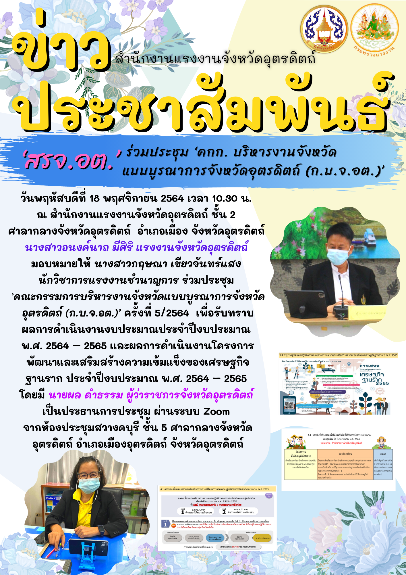 สรจ.ตาก จัดการประชุมแกนนำ/เครือข่ายอาสาสมัครแรงงานระดับตำบล จังหวัดตาก ครั้งที่ 1 ประจำปีงบประมาณ พ.ศ.2565