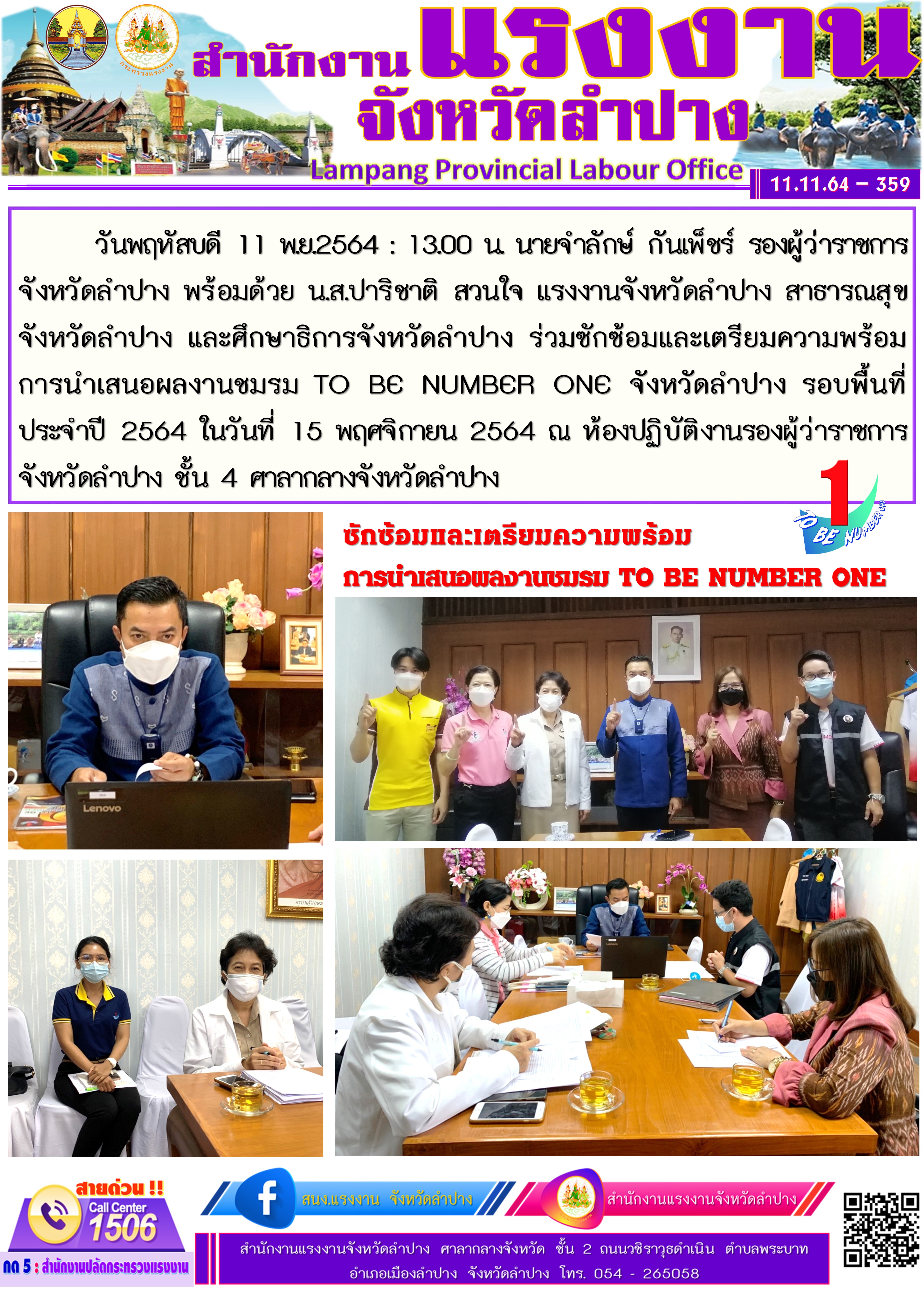 สรจ.ลำปาง ร่วมซักซ้อมและเตรียมความพร้อมการนำเสนอผลงานชมรม TO BE NUMBER ONE จังหวัด