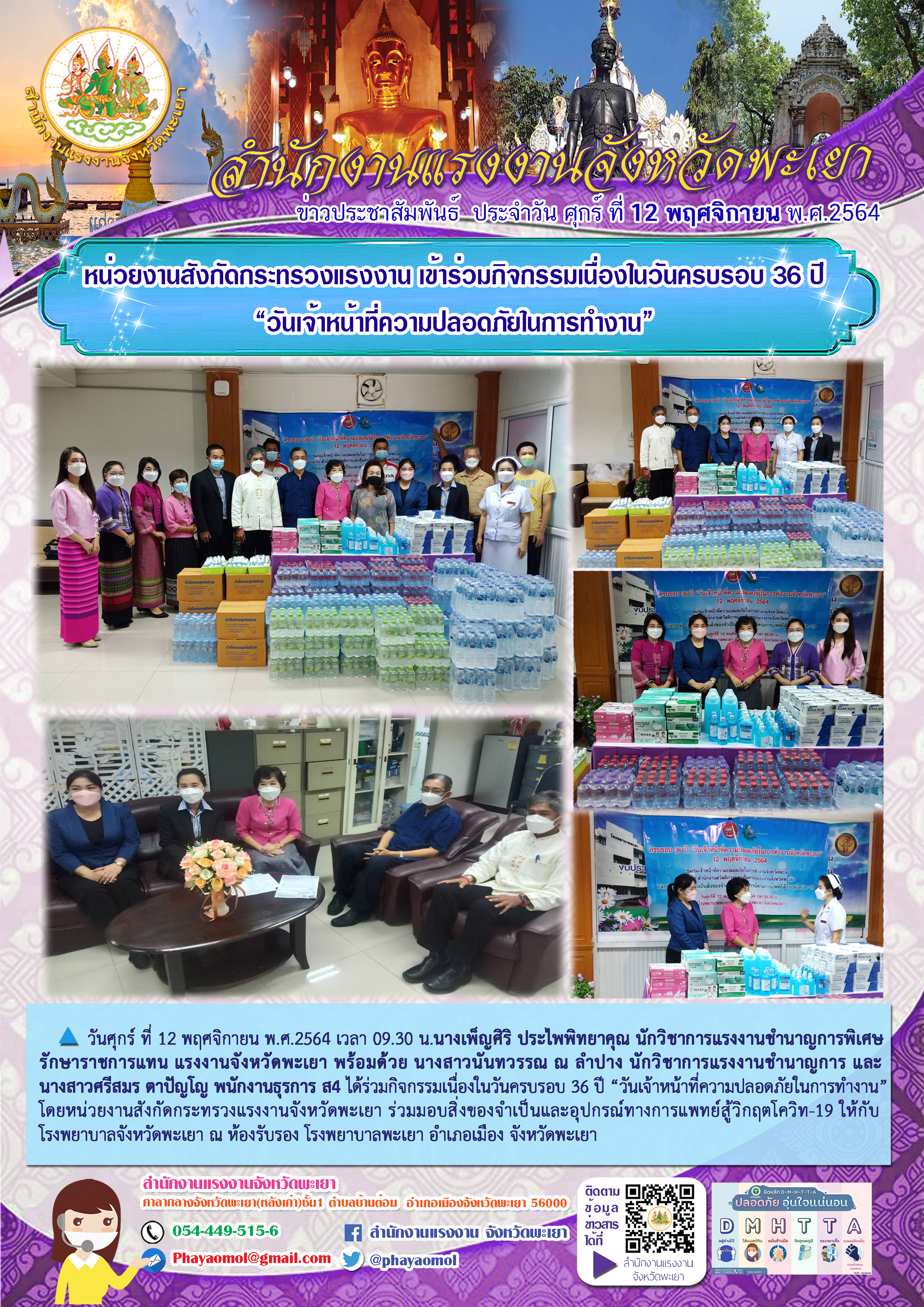 หน่วยงานสังกัดกระทรวงแรงงานจังหวัดพะเยา เข้าร่วมกิจกรรมเนื่องในวันครบรอบ 36 ปี“วันเจ้าหน้าที่ความปลอดภัยในการทำงาน”
