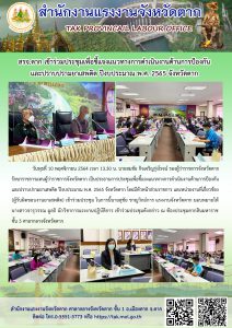 แรงงานจังหวัดตรัง ร่วมการประชุมคณะกรรมการขับเคลื่อนโครงการทักษะด้านอาชีพแก่นักเรียนที่ไม่ได้เรียนต่อ หลังจบการศึกษาภาคบังคับ ครั้งที่ 1/2565