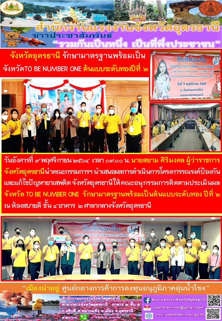 จังหวัดอุดรธานีรักษามาตรฐานพร้อมเป็นจังหวัด TO BE NUMBER ONE ต้นแบบระดับทองปีที่ 2