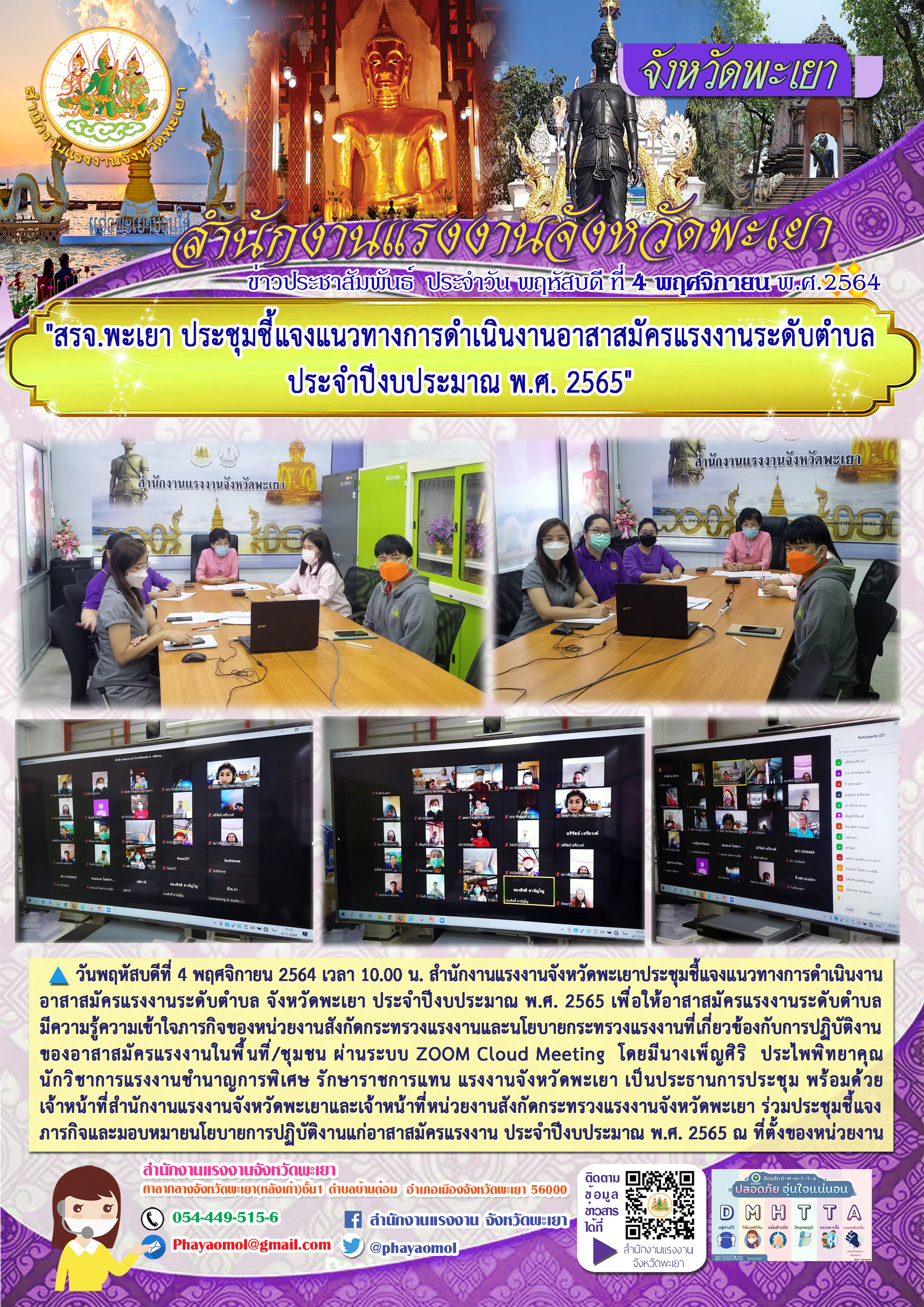 สรจ.พะเยา ประชุมชี้แจงแนวทางการดำเนินงานอาสาสมัครแรงงานระดับตำบล ประจำปีงบประมาณ พ.ศ. 2565