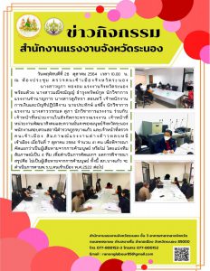 สรจ.ระนอง การประชุมหัวหน้าส่วนราชการในสังกัดกระทรวงแรงงานจังหวัดระนอง ครั้งที่ 1/2565 ประจำปีงบประมาณ 2565