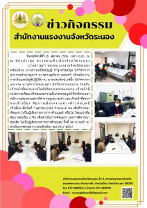 แรงงานจังหวัดนราธิวาส เข้าร่วมประชุมนำเสนอผลการพัฒนาคุณภาพชีวิตของประชาชน ระดับจังหวัด ปี 2564