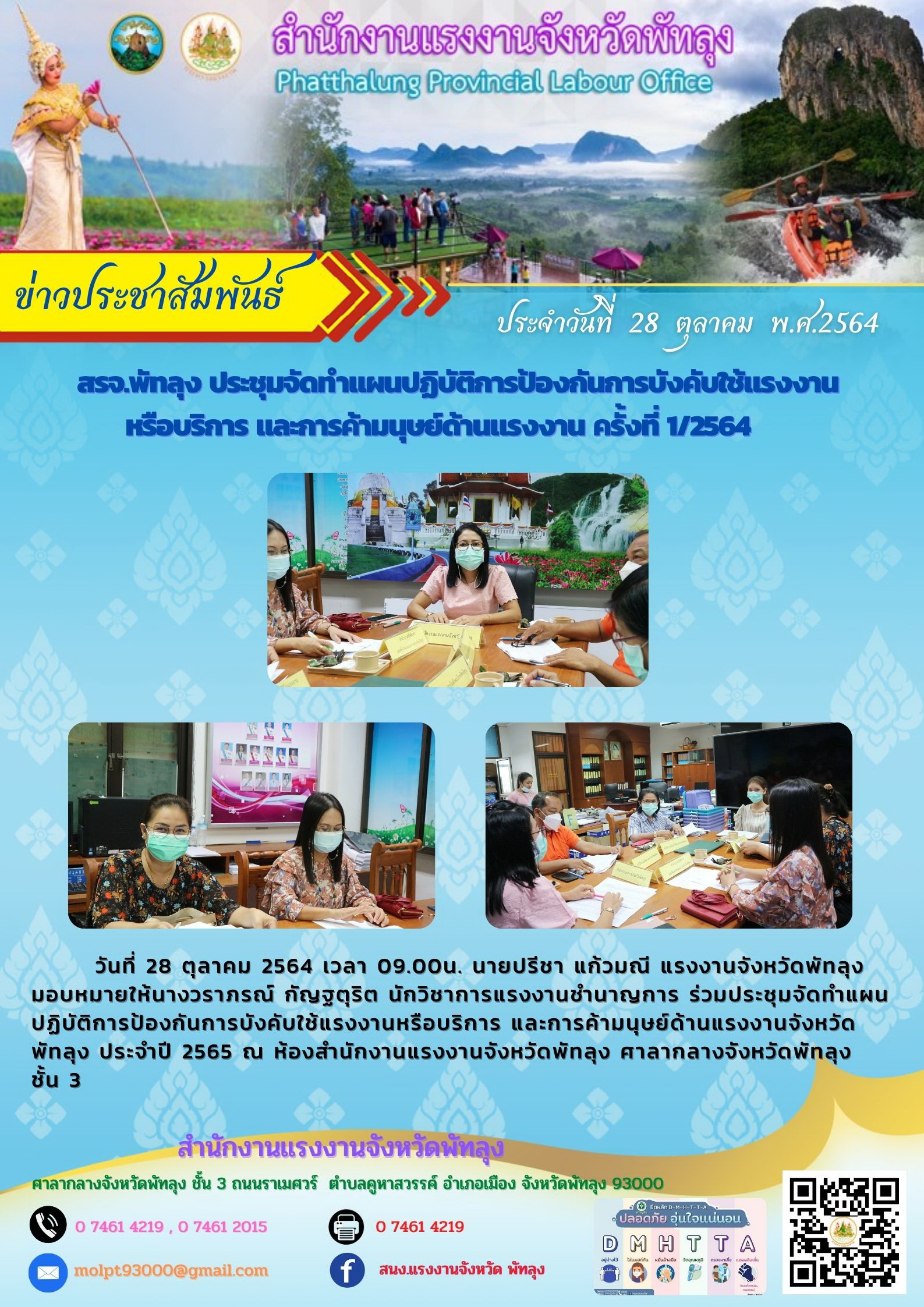 สรจ.พัทลุง ประชุมจัดทำแผนปฏิบัติการป้องกันการบังคับใช้แรงงานหรือบริการและการค้ามนุษย์ด้านแรงงาน ครั้งที่ 1/2564