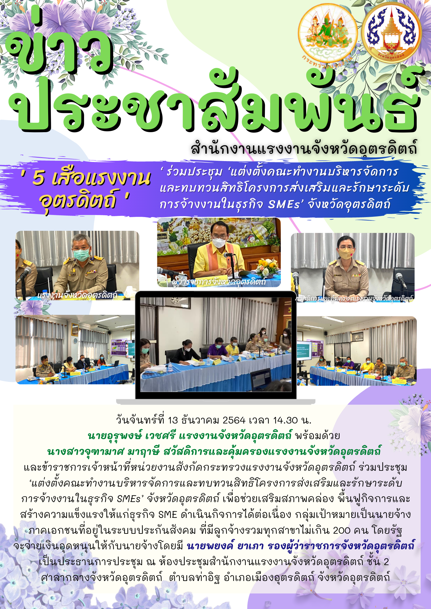 ‘5 เสือแรงงานอุตรดิตถ์’ ร่วมประชุม ‘แต่งตั้งคณะทำงานบริหารจัดการและทบทวนสิทธิโครงการส่งเสริมและรักษาระดับการจ้างงานในธุรกิจ SMEs’ จังหวัดอุตรดิตถ์