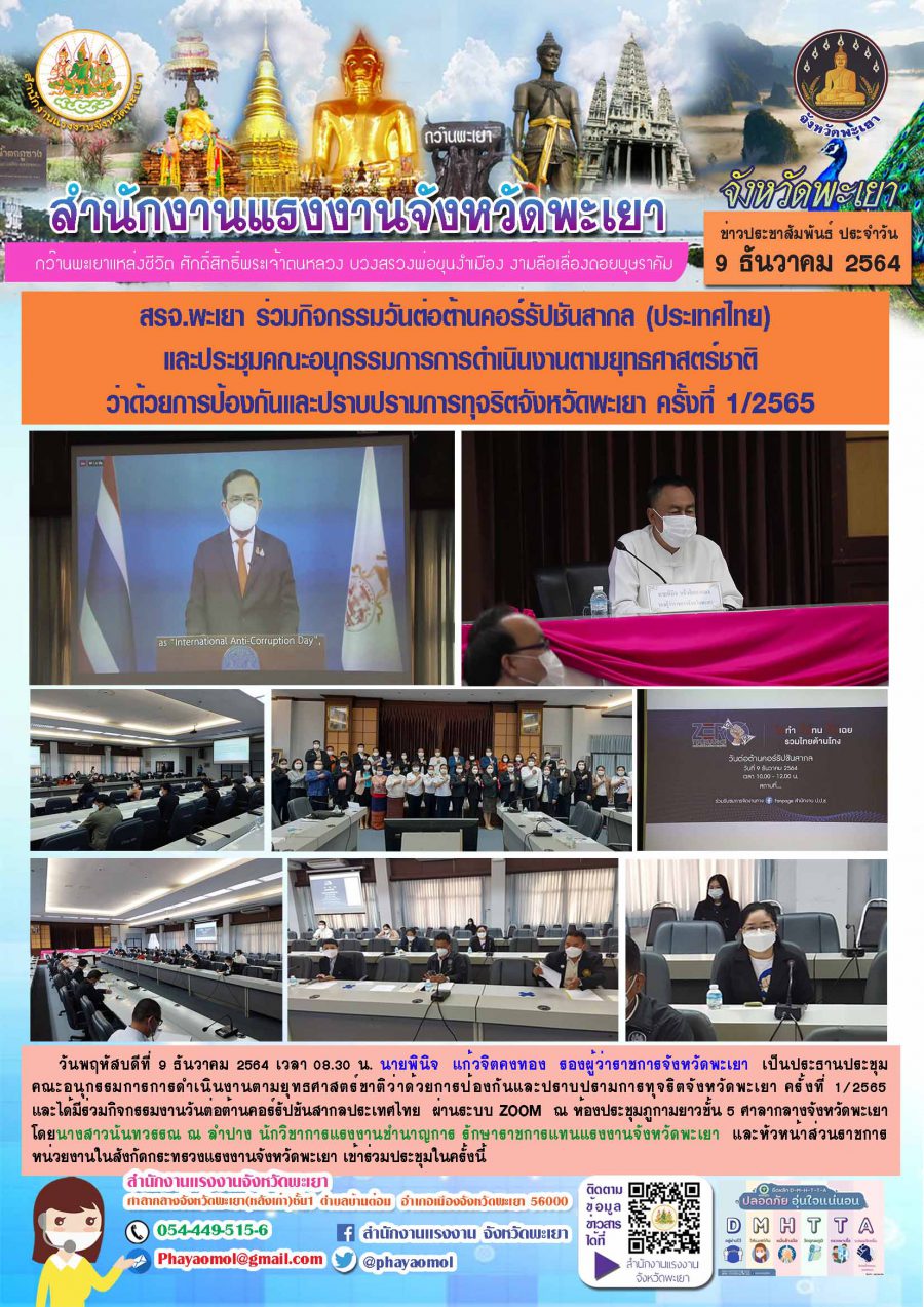 สรจ.พะเยา ร่วมกิจกรรมงานวันต่อต้านคอร์รัปชันสากลประเทศไทย และประชุมคณะอนุกรรมการการดำเนินงานตามยุทธศาสตร์ชาติว่าด้วยการป้องกันและปราบปรามการทุจริตจังหวัดพะเยา ครั้งที่ 1/2565