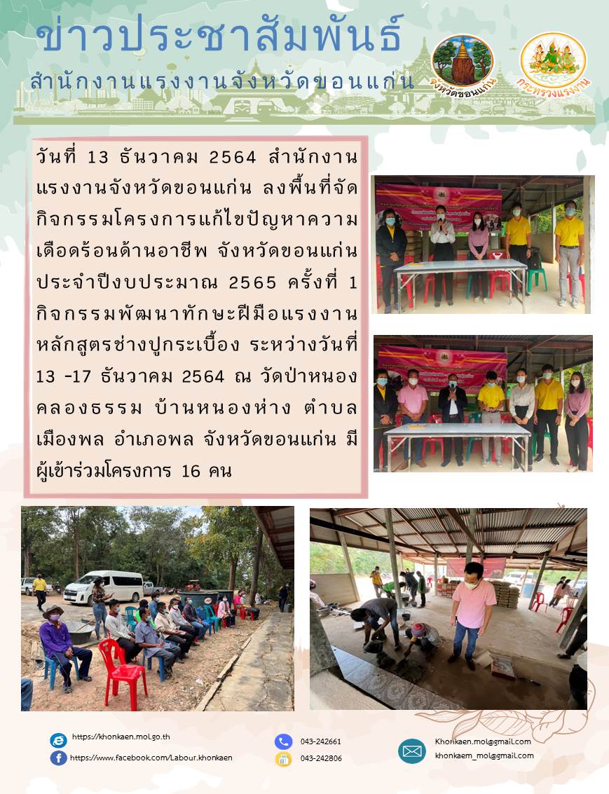 สรจ.ขอนแก่น ลงพื้นที่จัดกิจกรรมโครงการแก้ไขปัญหาความเดือดร้อนด้านอาชีพ จังหวัดขอนแก่น ประจำปีงบประมาณ 2565 ครั้งที่ 1 ณ วัดป่าหนองคลองธรรม บ้านหนองห่าง ตำบลเมืองพล อำเภอพล จังหวัดขอนแก่น