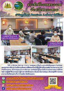 แรงงานจังหวัดหนองคาย ร่วมประชุมคณะอนุกรรมการพิจารณาบำเหน็จความเห็นชอบกรณีพิเศษแก่เจ้าหน้าที่ผู้ปฏิบัติงานด้านยาเสพติด ปีงบประมาณ พ.ศ. 2564 จังหวัดหนองคาย