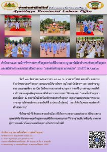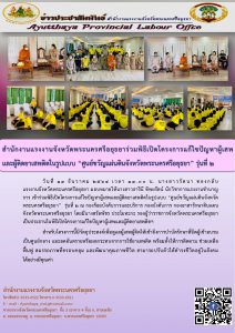 สำนักงานแรงงานจังหวัดพระนครศรีอยุธยา ร่วมพิธีเปิดโครงการแก้ไขปัญหาผู้เสพ และผู้ติดยาเสพติดในรูปแบบ “ศูนย์ขวัญแผ่นดินจังหวัดพระนครศรีอยุธยา” รุ่นที่ 2