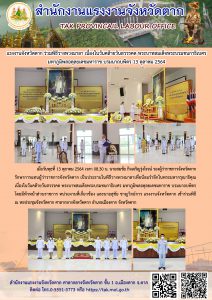 แรงงานจังหวัดตาก ร่วมพิธีวางพวงมาลา เนื่องในวันคล้ายวันสวรรคต พระบาทสมเด็จพระบรมชนกาธิเบศร มหาภูมิพลอดุลยเดชมหาราช บรมนาถบพิตร 13 ตุลาคม 2564