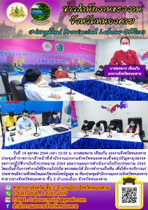 แรงงานจังหวัดหนองคายประชุมข้าราชการ/เจ้าหน้าที่สำนักงานแรงงานจังหวัดหนองคายเพื่อสรุปปัญหาอุปสรรคผลการปฏิบัติงานในปีงบประมาณ 2564 และวางแผนการดำเนินงานในปีงบประมาณ 2565