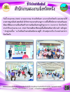 สำนักงานแรงงานจังหวัดกระบี่ดำเนินโครงการสร้างความมั่นคงทางจิตใจ เพื่อชีวิตใหม่ตลอดพรรษา ปี 2564