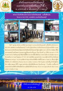 หน่วยงานในสังกัดกระทรวงแรงงานจังหวัดนนทบุรี ลงพื้นที่ดำเนินโครงการ FACTORY SANDBOX ของจังหวัดนนทบุรี