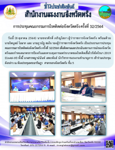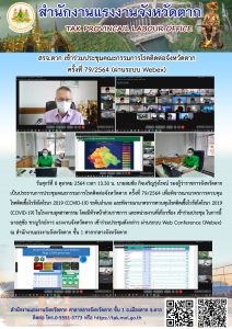 แรงงานจังหวัดตรัง ร่วมการประชุมคณะกรรมการโรคติดต่อจังหวัดตรัง ครั้งที่ 32/2564 เพื่อติดตามและประเมินสถานการณ์ของจังหวัดตรังและกำหนดมาตรการป้องกันและควบคุมการแพร่ระบาดของโรคติดเชื้อไวรัสโคโรนา 2019 (Covid–19)