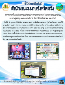 แรงงานจังหวัดตรัง ร่วมการประชุมชี้แจงคู่มือการปฏิบัติงานโครงการการบริหารจัดการแรงงานนอกระบบ แรงงานสูงอายุ และแรงงานพิการ ประจำปีงบประมาณ พ.ศ. 2565