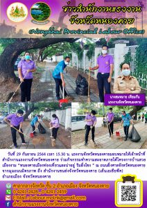 แรงงานจังหวัดหนองคายมอบหมายให้เจ้าหน้าที่ สำนักงานแรงงานจังหวัดหนองคาย ร่วมกิจกรรมทำความสะอาดภายใต้โครงการบ้านสวย เมืองงาม “หนองคายเมืองท่องเที่ยวและน่าอยู่ ริมฝั่งโขง ”