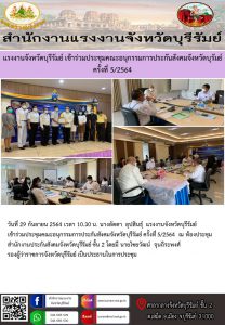 แรงงานจังหวัดบุรีรัมย์ เข้าร่วมประชุมคณะอนุกรรมการประกันสังคมจังหวัดบุรัมย์ ครั้งที่ 5/2564